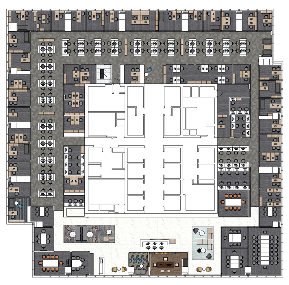 新的空間猶如一張空白紙張,它可以轉化一切,可以讓設計團隊靈感自由釋放,創(chuàng)造一個心靈渴望的空間。設計團隊與客戶緊密合作,通過品牌元素的創(chuàng)新表達去體現(xiàn)樂府互娛非凡的品牌文化。工作區(qū)規(guī)劃包括固定的辦公區(qū)、同時配有靈活/協(xié)作的區(qū)域可供工作和休閑、以及各種形式的私密專注空間/會議室。