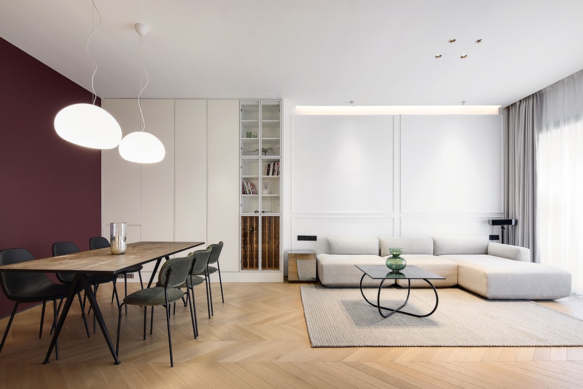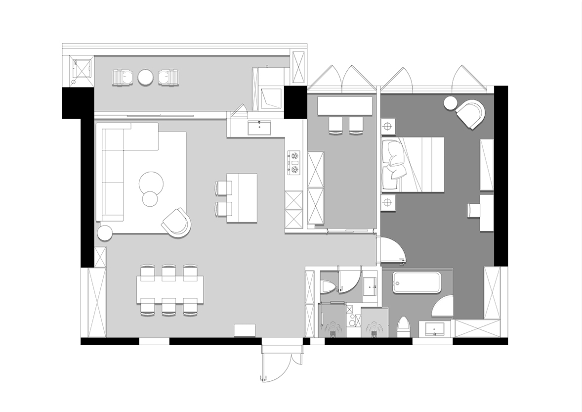 Simplicity and refinement are the pursuit of modern design, comfort and quality are the goals of modern design, adhering to the soul of simplicity, incorporating artistic and fashionable design elements, to create a very rational space. In the design, the gray tone is used, and the color is skipped to give vitality to the entire space and bring a strong sense of fashion; we combine space, people and objects in a reasonable and exquisite combination to depict the most rich and moving space effect, and comfortable The comfortable sofa, the concise and warm dining room, the infusion of yellow, the pillows, the sofa, and the echo of the flowers make the living room a bit more warm and charming, enrich the space style, bring endless imagination to the space, and make people full A sense of belonging, maybe this is the feeling of home.