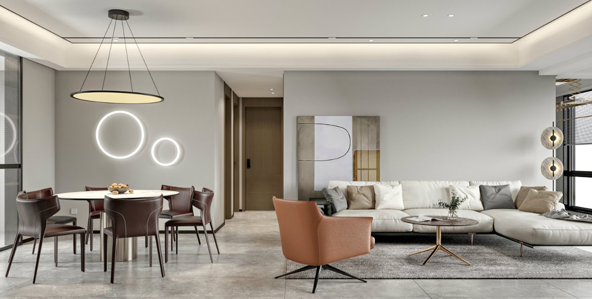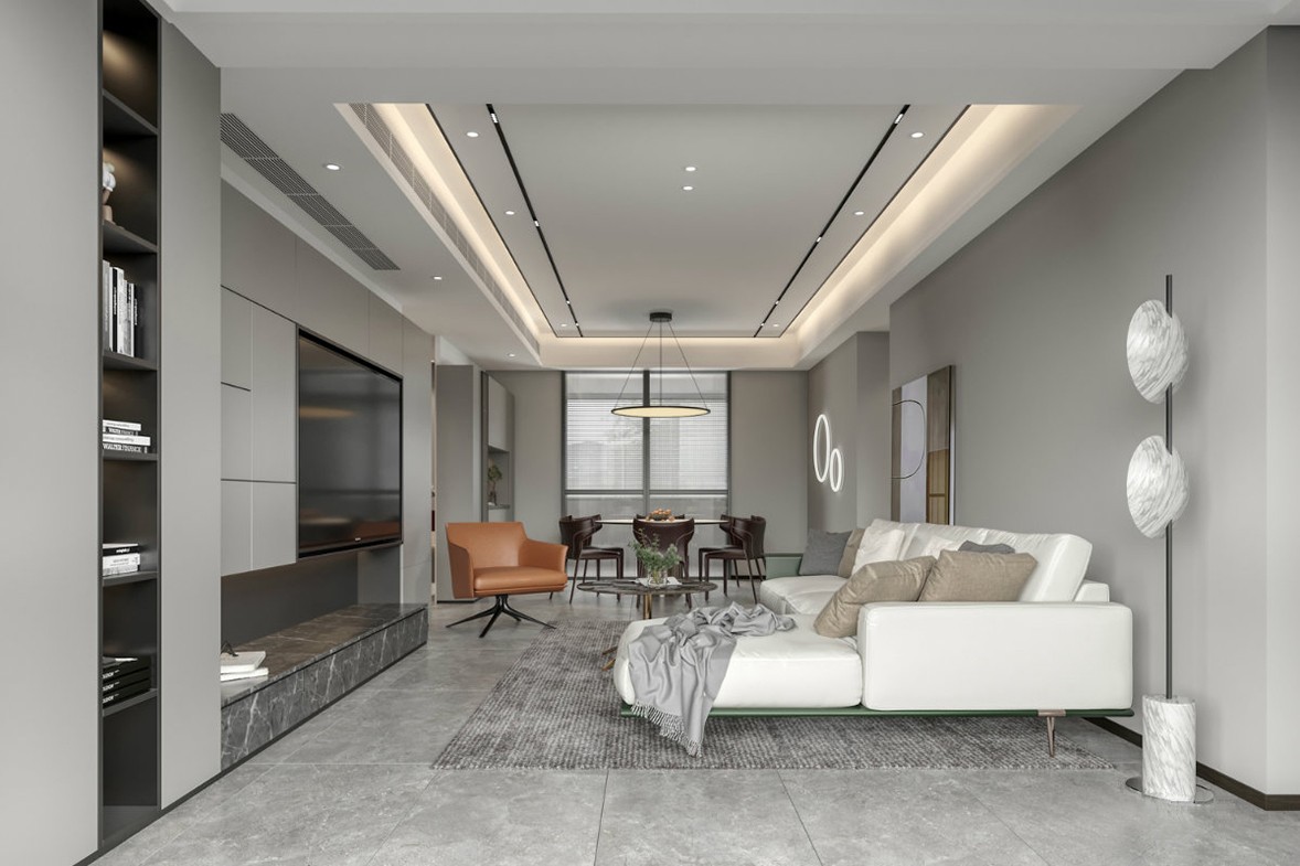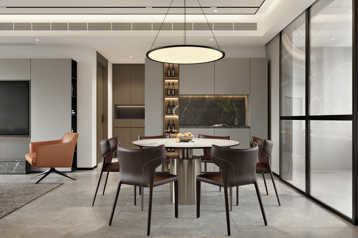 When designing the open space, exquisite furniture and clean lines are used. The open space brings maximum comfort to all designs, which not only meets the needs of daily life, but also embodies the aesthetics of art. All the spaces in the living room are not pretentious, and the elements of decoration and color are highly rationally reduced, showing the beauty of handwriting and the beauty of modern minimalism. The designer uses simple but not simple details to create a spiritual residential space. The methodical texture details of the interior are perfectly presented, combined with the embellishment of the interior, the overall sense of proportion tends to be perfect, and the material gives the whole space a high-level texture.